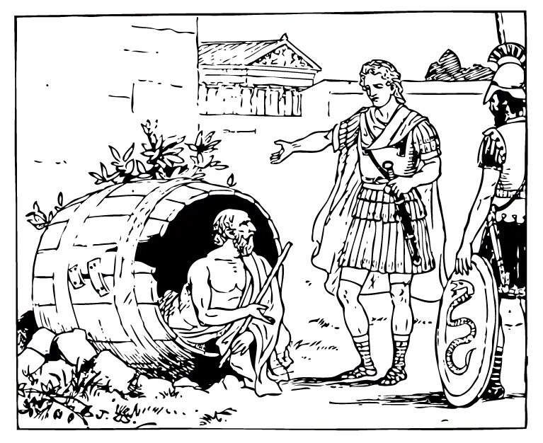 Diogenes, in his barrel, and Alexander the Great. Diogenes has been a patron saint of Other Life from the beginning. Alexander famously said that if he were not Alexander, he would wish to be Diogenes.